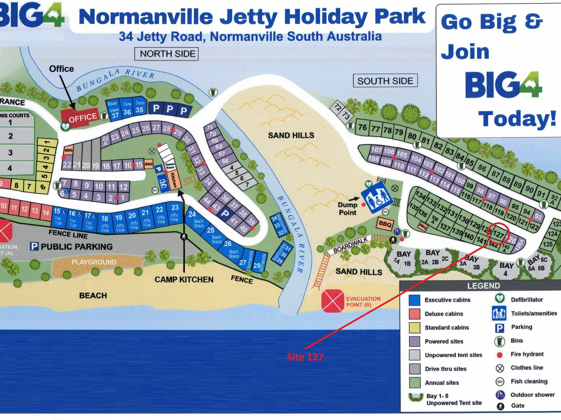 Nestled on the serene south side of the Bungala River and tucked in behind the natural sand dunes, this onsite caravan with annex offers the ultimate coastal getaway. Located just a short stroll to the pristine Normanville Beach and the Surf Life Saving Club, you’ll enjoy easy access to sun, sand, and surf – all via a convenient boardwalk.